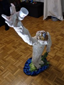 Ich bin mit meiner Arbeit: Im Außenbereich: Titel: Schlüssel eine Leucht-Installation, im Innenbereich mit einer Installation: Titel “ Erde und Himmel werden vergehen“, zu finden.