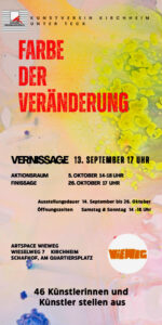 Mitgliederausstellung des Kunstvereins Kirchheim unter Teck, auf dem Schafhof, Wieselweg 7, 73230 Kirchheim unter Teck. Galerie: Artspace Wieweg. Vom 13.September bis zum 26.Oktober 2025