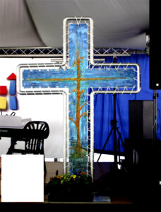 Bühnenkreuz bei der Zeltkirche " Lebensbaum"